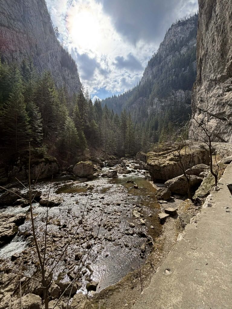 A szerpentines utat követően megérkeztünk a lenyűgöző Békás-szoros szurdokvölgyébe, ahol egy 2 km-es gyalogtúrát tettünk. Lélegzetelállító élmény volt a magasba törő, havas-jeges sziklákat testközelből megcsodálni.
